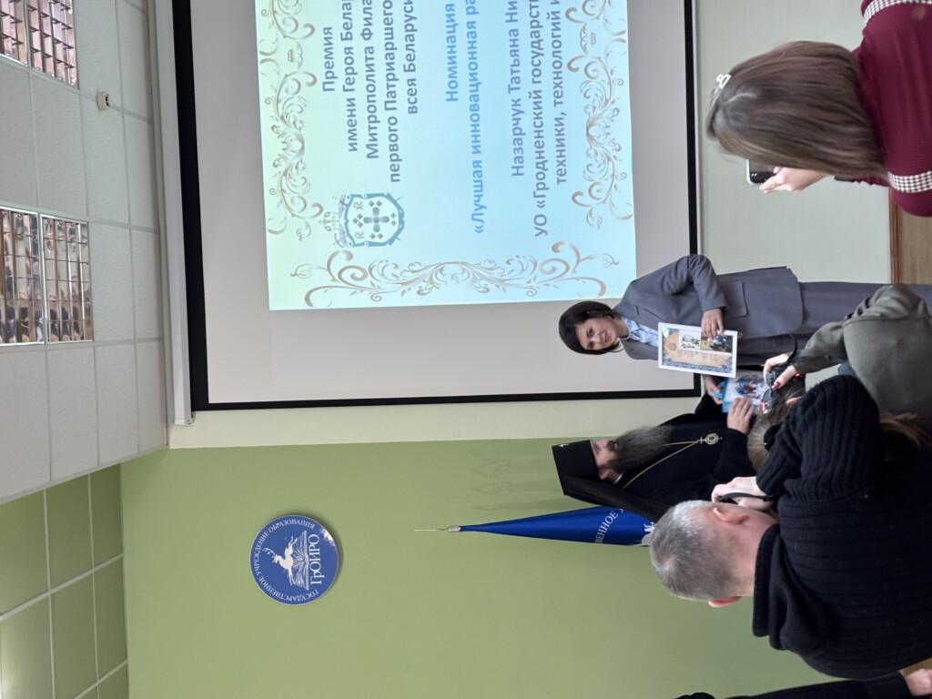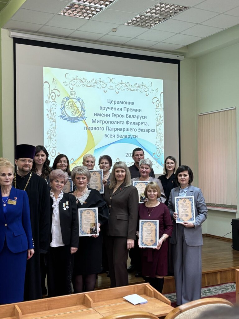Преподаватель Татьяна Николаевна Назарчук награждена Премией имени Героя Беларуси Митрополита Филарета, первого Патриаршего Экзарха всея Беларуси «За высокий уровень организации духовно-нравственного и патриотического воспитания детей и молодежи», в номинации «Лучшая инновационная разработка года». 22 декабря 2025 года в Гродненском областном институте развития образования состоялась церемония вручения Премии имени Героя Беларуси Митрополита Филарета, первого Патриаршего Экзарха всея Беларуси, «За высокий уровень организации духовно-нравственного и патриотического воспитания детей и молодежи». Премия учреждена в 2021 году по инициативе архиепископа Гродненского и Волковысского Антония, личного секретаря и келейника первого Патриаршего Экзарха всея Беларуси, Гродненской, Лидской, Новогрудской епархиями Белорусской православной церкви, Гродненским областным институтом развития образования при поддержке Главного управления образования Гродненского областного исполнительного комитета. Она вручается педагогическим работникам, священнослужителям, педагогам воскресных школ, показавшим высокое качество духовно-нравственного и патриотического воспитания обучающихся. Победители определяются в номинациях: «Труд педагога как служение», «Лучшая инновационная разработка года», «Лучшая система духовно-нравственного и патриотического воспитания детей и молодежи», «Взрастившему педагога». В 2025 году премия вручается уже в пятый раз. В конкурсе принимали участие претенденты из учреждений образования, расположенных на территории Гродненской, Новогрудской и Лидской епархий Белорусской Православной Церкви.
