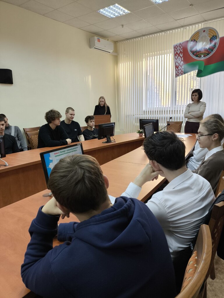 В ходе мероприятия участники узнали информацию о паспорте гражданина Республики Беларусь, государственных символах страны. В ходе беседы обсудили личные качества гражданина Республики Беларусь (трудолюбие, честность, ответственность, любовь к Родине), значимость гражданской позиции каждого человека для развития страны.