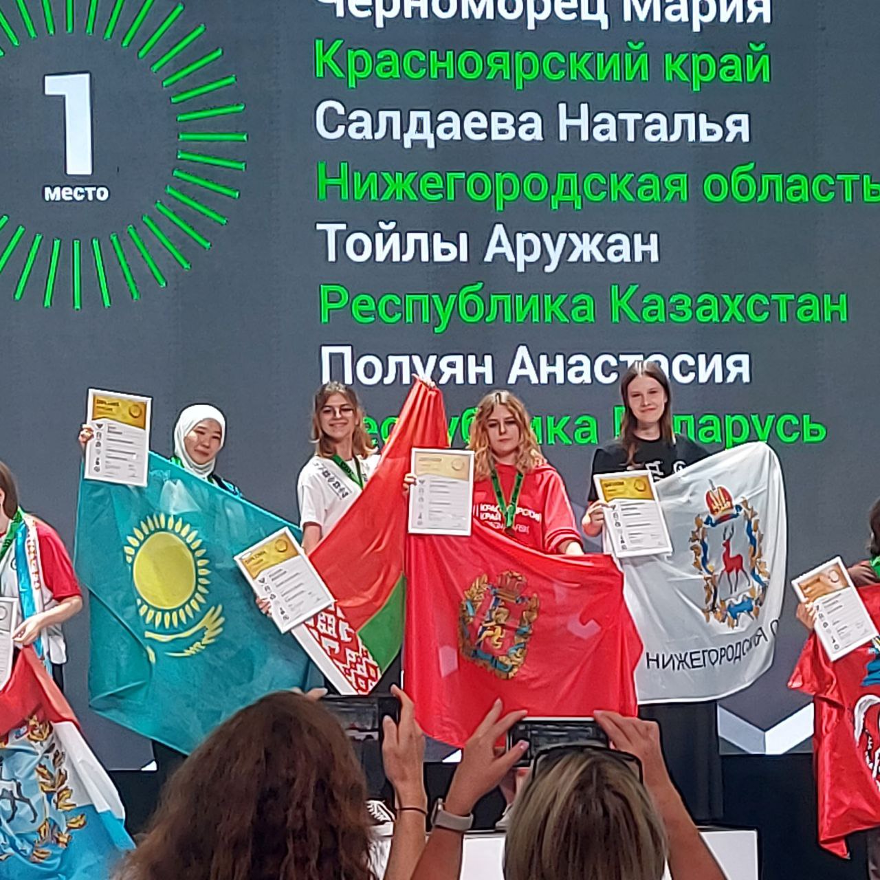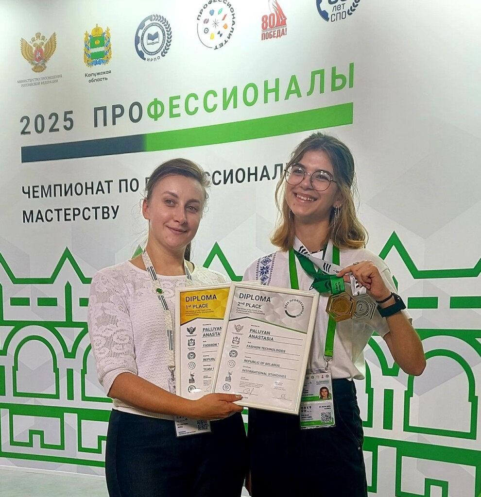 Полуян Анастасия, в международном зачёте по компетенции “Технология моды” завоевала 2-е место и серебряную медаль. В командном зачёте 1-е место и золотую медаль.
