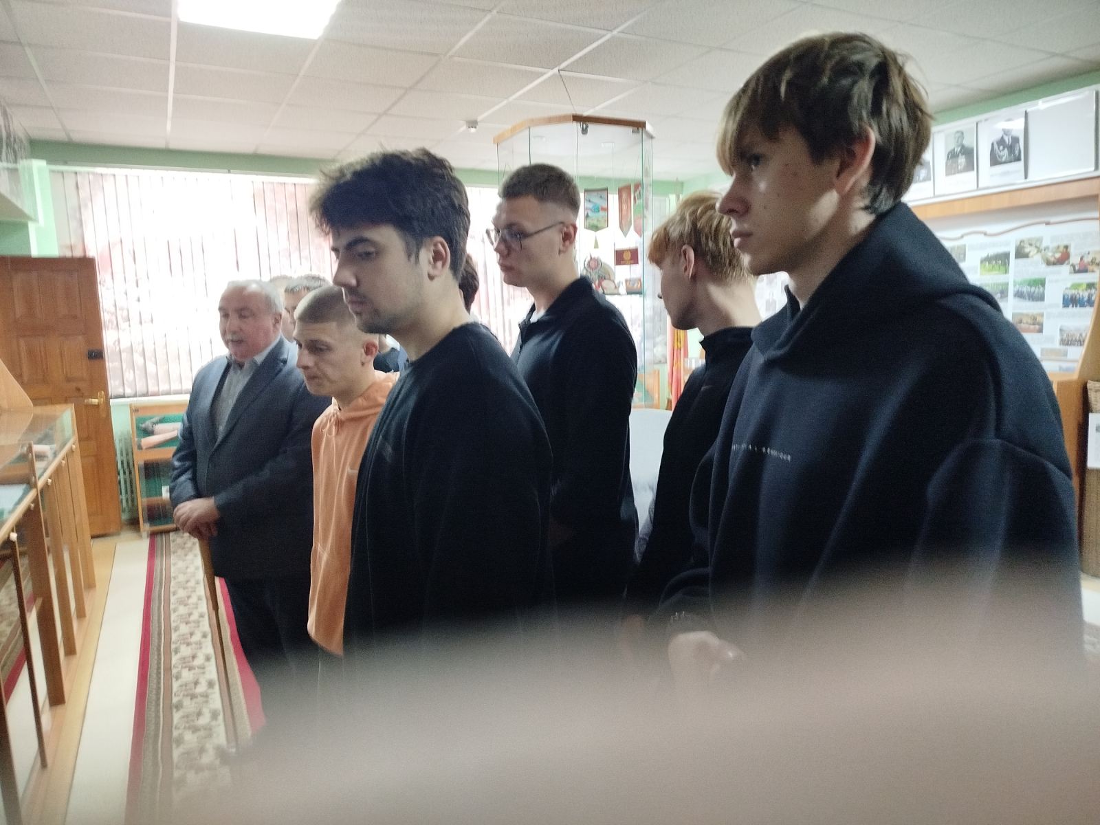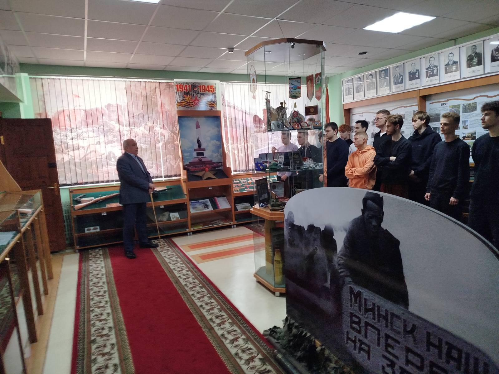 В качестве экскурсовода выступил ведущий специалист идеологической работы и социальной защиты военного комиссариата Гродненской области Александр Кавун. Как рассказал Александр Анатольевич, экспозиция в областном военкомате не просто содержательная, но и уникальна для Беларуси в целом. В одной из экспозиций представлены порядка шестидесяти наград в труде и мирное время, награды времени Великой Отечественной войны – орден Ленина, Красной Звезды, Ушакова, медаль “За отвагу”.