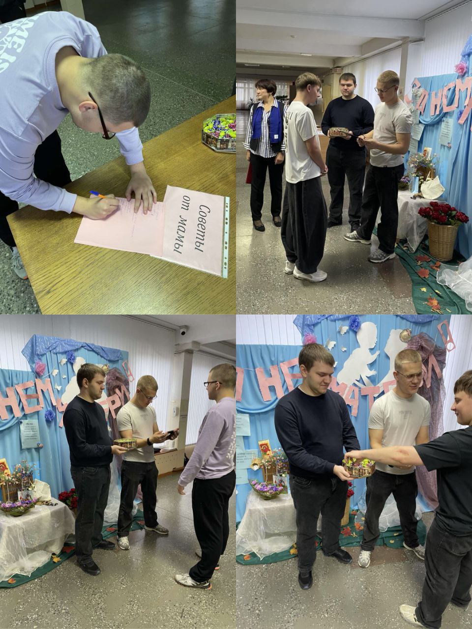 День матери — это не просто праздник, это напоминание о главных ценностях: любви, заботе и уважении к семье. Во втором корпусе нашего колледжа прошёл душевный интерактив, организованный учащимися группы 6м под кураторством преподавателя и председателя первичной организации ОО «Белорусский союз женщин» В.И. Лукошко.