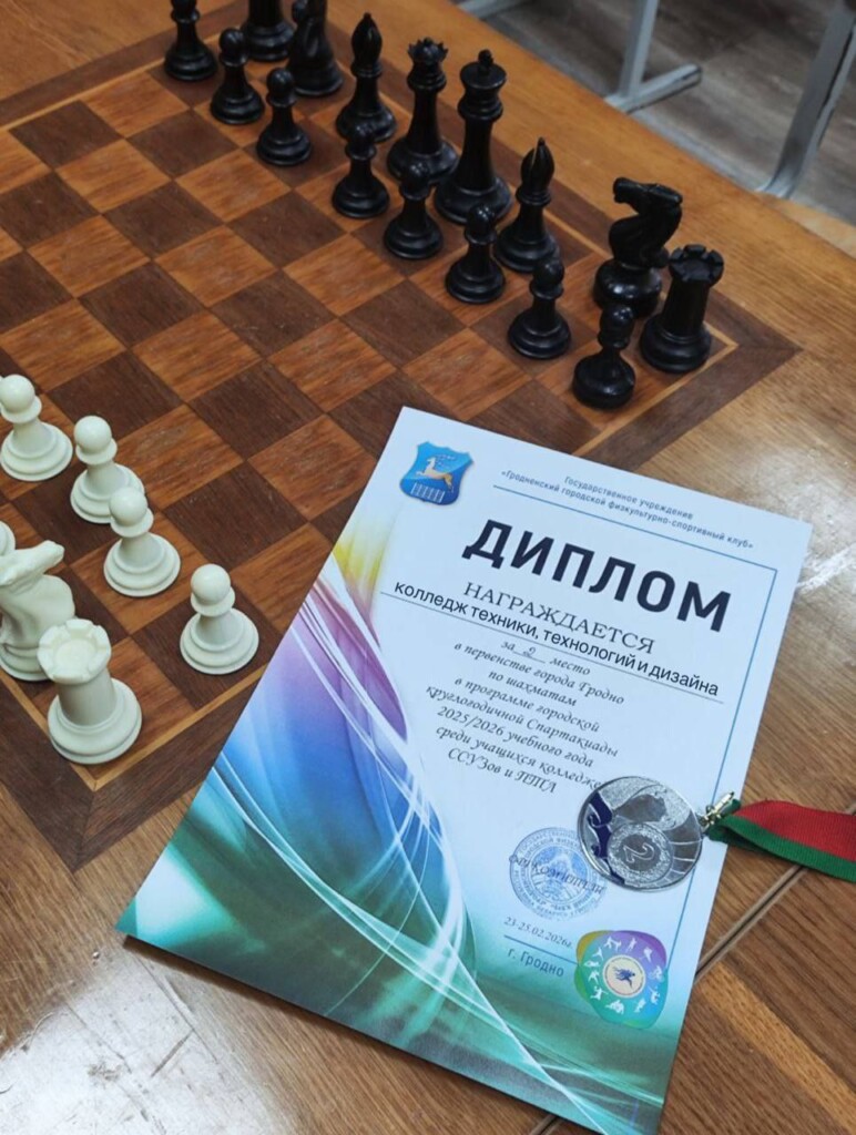 Команда нашего колледжа заняла второе место в первенстве города Гродно по шахматам в программе городской круглогодичной Спартакиады 2025/2026 учебного года среди учащихся колледжей. Желаем успехов в учебе и новых побед!!!