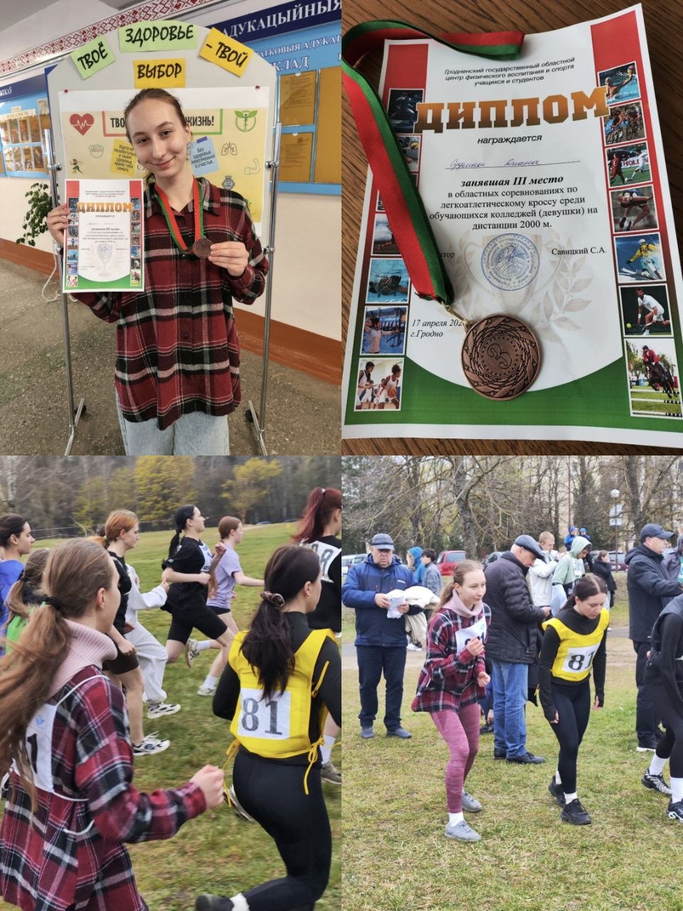 17 апреля на базе Гродненского медицинского колледжа проходили областные соревнования по легкоатлетическому кроссу среди обучающихся колледжей. Наш колледж представляли 4 участницы на дистанции 1000 и 2000 метров. Девушки проявили характер, выносливость и выложились на все 100%.