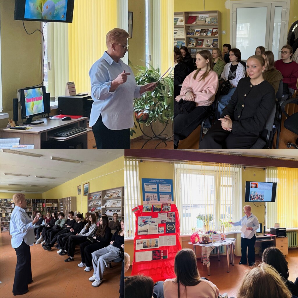 В рамках республиканского конкурса в номинации «Молодежь за ТРАДИЦИИ ради жизни» команда нашего колледжа продолжает свою активную работу. Команда и участники проекта, учащиеся группы 5эм посетили библиотеку – филиал 9 ГУК «Централизованная библиотечная система г.Гродно». Заведующая филиалом, Гудко Надежда Федоровна, провела для ребят познавательный час под названием «Живая нить традиций».